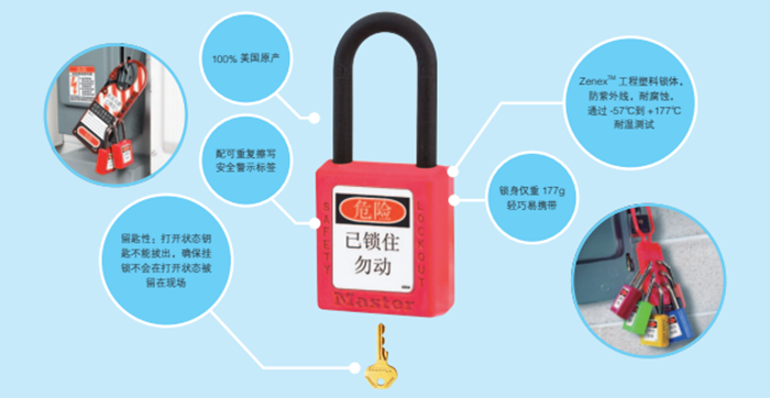 電源開(kāi)關(guān)、氣源開(kāi)關(guān)、管道閥門(mén)開(kāi)關(guān)、非作業(yè)人員不能靠近等,這些設(shè)備、場(chǎng)合都需要加上安全鎖具,防止失誤操作,并向作業(yè)人員作出警示。使用安全鎖具的重要作用在于正確鎖定、關(guān)閉或隔離作業(yè)對(duì)象,使工作人員在進(jìn)行作業(yè)時(shí),能有效地使用安全鎖具進(jìn)行作業(yè)輔助,以防止意外發(fā)生。