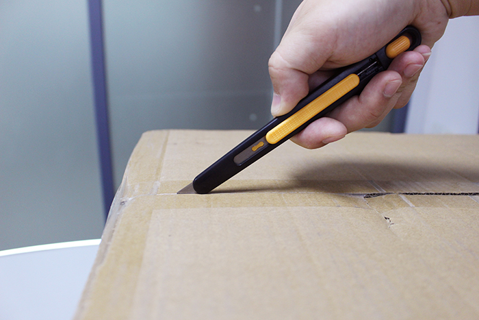 3. 用掌心緊握安全刀具,代替拇指把刀片維持在暴露于刀柄外的狀態(tài)。
